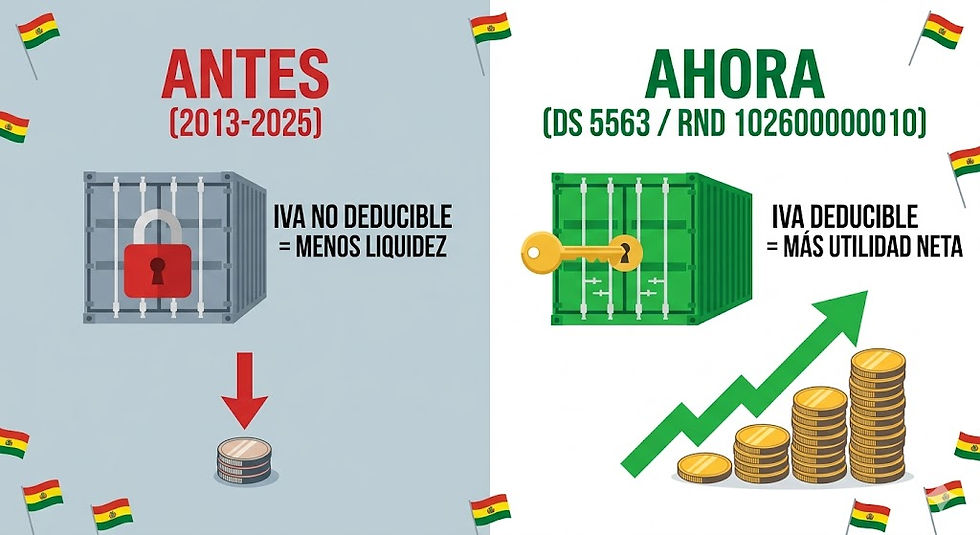 Deducibilidad Inmediata: El IVA pagado en compras vinculadas a operaciones Tasa Cero ahora es considerado un gasto deducible (Art. 14 del DS 24051 modificado).